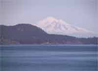 Ausblick auf den noch aktiven Vulkan Mt. Baker, der aber hinter der
